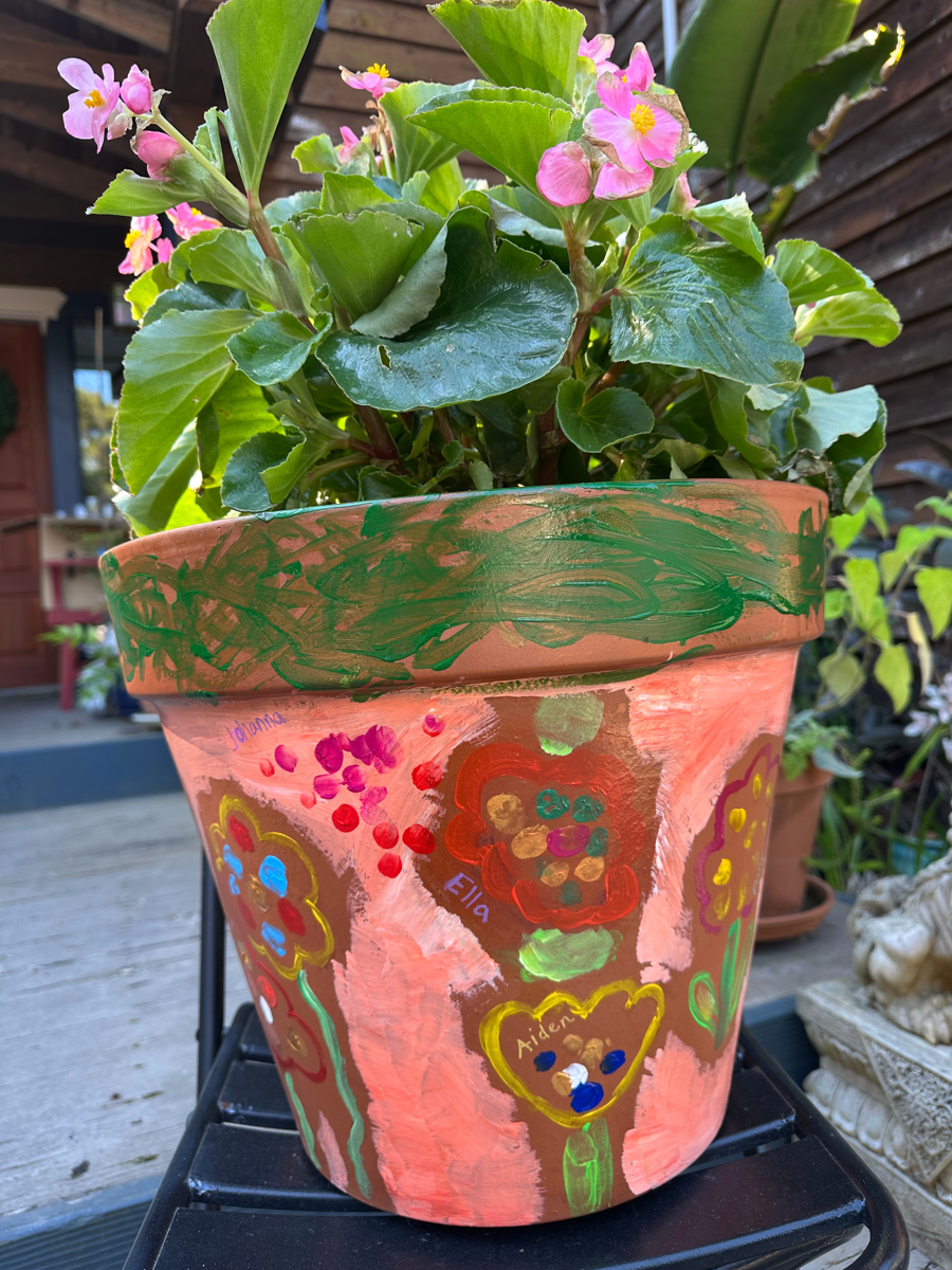 Bring home the charm of a one-of-a-kind garden pot created by the talented students of Mrs. Ryan's Kindergarten.