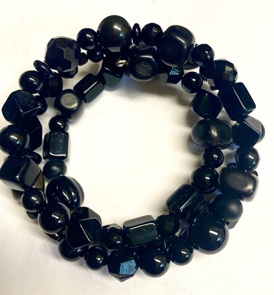 One of a Kind Black Onyx Triple Wrap Bracelet