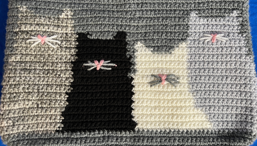 This is truly a once-in-a-lifetime handmade piece — a one-of-a-kind crochet cat tote bag that will never be made again!
