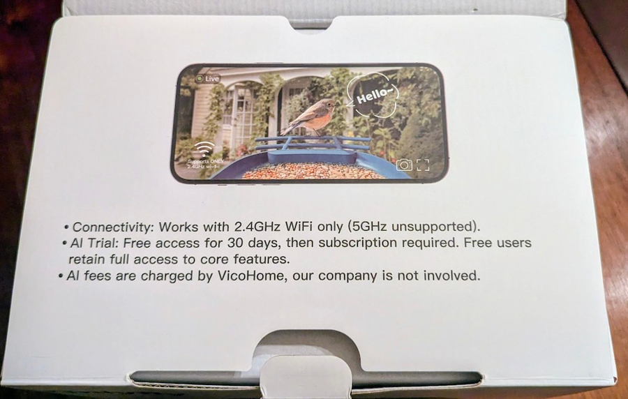 New and in the original box with the manual and all documents. It is solar-powered with a 2K camera that provides live video, motion detection, full-color night vision, o-Way Audio, and more! Requires 2.4GHz WiFi. Core features are included. Additional AI features require a service subscription after a free 30-day trial. Sells on Amazon for $125.