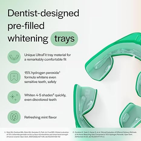 PREFILLED TEETH WHITENING TRAYS 15%: 20 trays (10 for the top and 10 for the bottom) for a total of 10 treatments. These trays are made of a unique, highly adaptable material that comfortably conforms to any smile. OPALESCENCE TEETH WHITENING: Easy to use, no LED light needed or recommended.