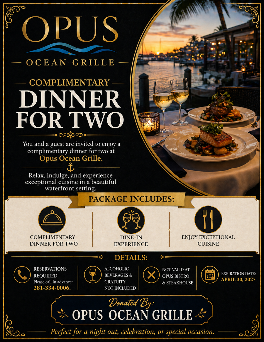 Enjoy an elegant night out with this beautifully curated Opus Ocean Grille experience. This package offers the perfect combination of fine dining and sophisticated décor, making it an ideal gift for a date night, anniversary, or special celebration.