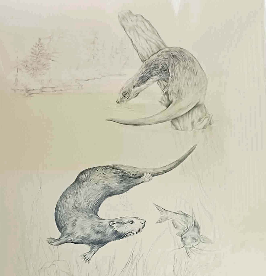 Signed and numbered lithograph by Canadian wildlife artist Robert Pow. Framed in glass. Pre-owned, vintage pencil sketch. Amazing detail! Size 26" x 30".
