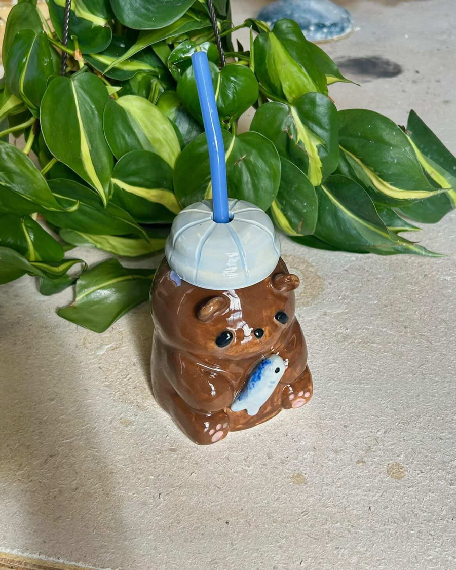 Alumna and professional ceramicist Maria DiDomenico is offering this playful bear-to-go tumbler! Bring your favorite beverage with you in this delightful tumbler. Check out more of Maria’s beautiful, whimsical work on her Instagram at @cotta.ceramics.