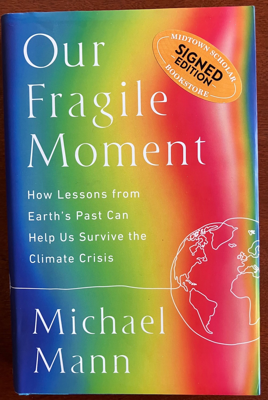 “How Lessons from Earth’s Past Can Help Us Survive the Climate Crisis,” signed by the author. In this paradigm-shifting book, Mann arms readers with the knowledge necessary to appreciate the gravity of the unfolding climate crisis, while emboldening them to act before it truly does become too late. Pre-owned, good condition with dust jacket. Sells new online for $15 - $30.