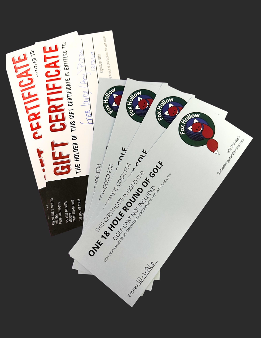 Experience an unforgettable day of golf with "Out"Fox" the Fairway! This auction item offers an exclusive opportunity for four players to enjoy 18 holes at the prestigious Fox Hollow Golf course. After your round, indulge in a delicious meal from Toppers Pizza, making it the perfect day out for friends or family. Bid now for your chance to combine great golf and tasty pizza in one fantastic package!