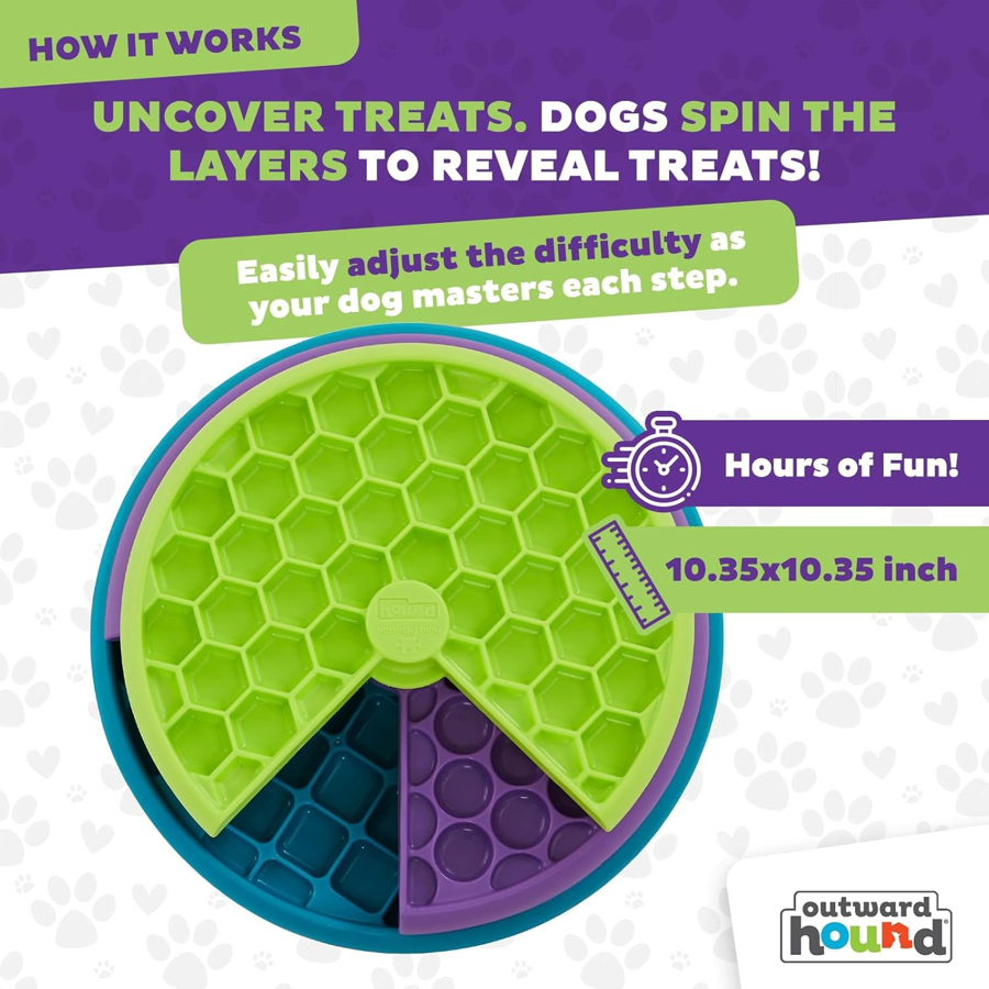 "OUTWARD HOUND" Nina Ottosson 3 Spinning Lickin' Layers Dog Puzzle Feeder, Level 2 Enrichment Dog Toy,