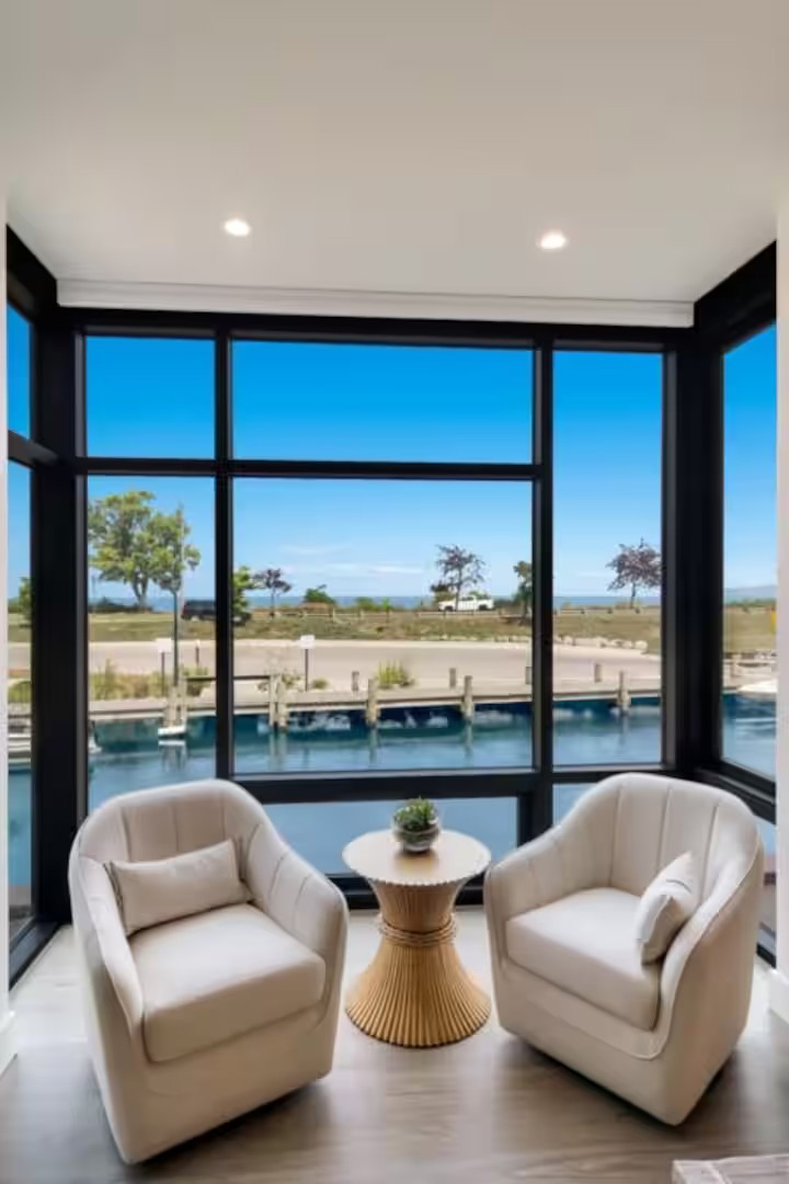 Enjoy a luxurious two-night stay in a modern riverside condominium in your hometown Traverse City. This two-bedroom retreat features beautiful views of the Boardman River and West Grand Traverse Bay, placing you steps from shops, dining, and waterfront charm. Your getaway includes a $50 gift card to Poppycocks, known for its vibrant, eclectic cuisine.