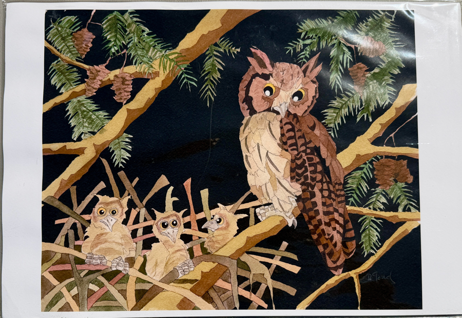 Owl Print with nest and Babies