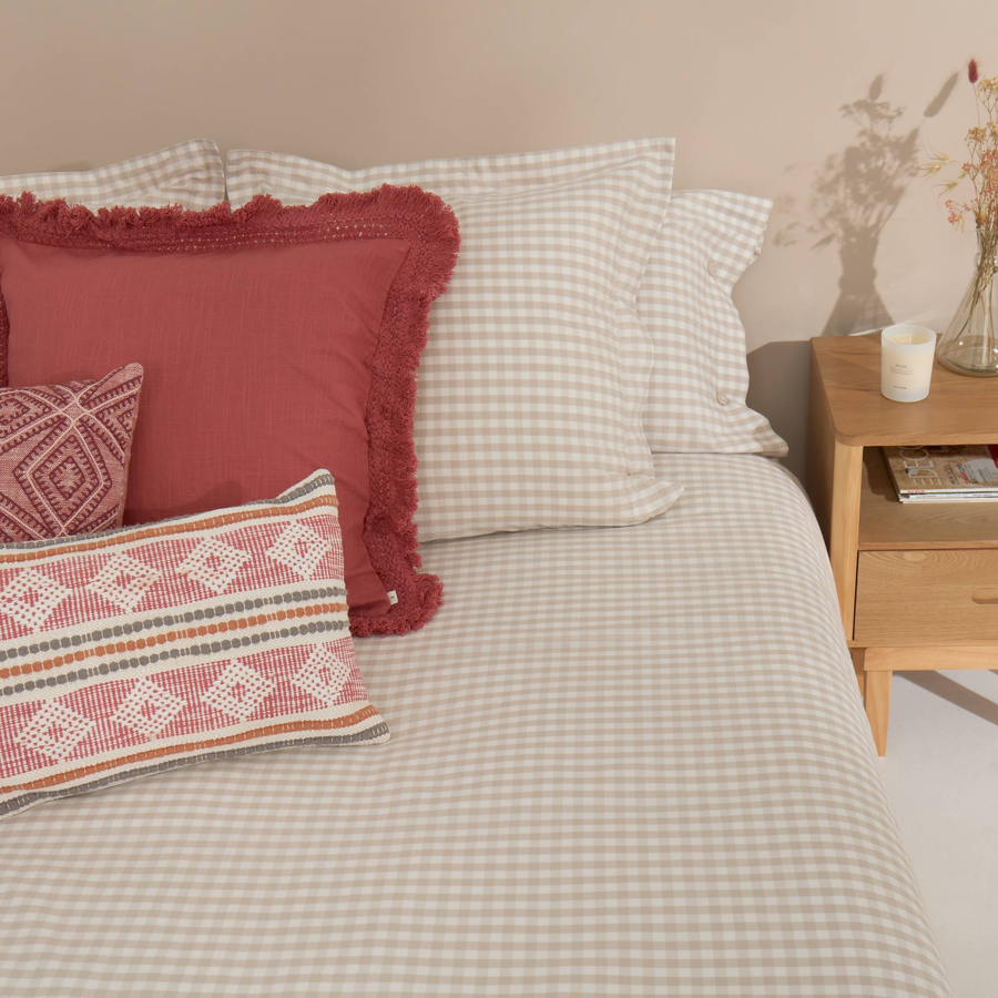 CAT Pack de Textura, MODEL KIMCUAD, que inclou: - Fundes de coixí de cotó de 180 fils tintats, formant quadrats vichy. Tancament amb botons. Mida 50x85 cm (2 unitats). - Fundes quadrants de cotó de 180 fils tintats, formant quadrats vichy. Tanca amb cremallera invisible. Mida 55x55 cm (2 unitats). - Funda nòrdica de cotó de 180 fils tintats, formant quadrats vichy. Oberta per la part inferior. Mida 240x260 (per a llit de 150 cm o 160 cm d'ample). Textura va néixer el 1979 a Barcelona i avui compta amb més de 100 botigues en diferents països. Des de fa més de 45 anys dissenyem tèxtils pensats per oferir benestar a la llar, combinant materials naturals i sostenibles amb un disseny cuidat. www.textura-interiors.com EN Texture Pack, MODEL KIMCUAD, which includes: - Cotton pillowcases, 180-thread count tinted, thread forming vichy checks. Button closure. Size 50x85 cm (2 units). - Cotton square cushions cover, 180-thread count tinted, thread forming vichy checks. Closed with invisible zipper. Size 55x55 cm (2 units). - Cotton duvet cover, 180-thread count tinted, thread forming vichy checks. Open at the bottom. Size 240x260 (for 150 cm or 160 cm wide bed). Textura was founded in 1979 in Barcelona and today has over 100 stores in different countries. For more than 45 years, we have been designing textiles to provide comfort at home, combining natural and sustainable materials with careful design. www.textura-interiors.com ES Pack de Textura, MODELO KIMCUAD, que incluye: - Fundas de almohada de algodón de 180 hilos tintados, formando cuadros vichy. Cierre de botones. Medida 50x85 cm (2 unidades). - Fundas de cojín cuadrante de algodón de 180 hilos tintados, formando cuadros vichy. Se cierra con cremallera invisible. Medida 55x55 cm (2 unidades). - Funda nórdica de algodón de 180 hilos tintados, formando cuadros vichy. Abierta por la parte inferior. Medida 240x260 (para cama de 150 cm o 160 cm de ancho). Textura nació en 1979 en Barcelona y hoy cuenta con más de 100 tiendas en distintos países. Desde hace más de 45 años diseñamos textiles pensados para ofrecer bienestar en el hogar, combinando materiales naturales y sostenibles con un diseño cuidado. www.textura-interiors.com ------ *Per motius logístics, la recollida o enviament de l'articles només estarà disponible a Espanya o a Ginebra. *Due to logistical constraints, item pickup or shipping will only be available in Spain or Geneva. *Por motivos logísticos, la recogida o envío de los artículos solo estará disponible en España o en Ginebra.