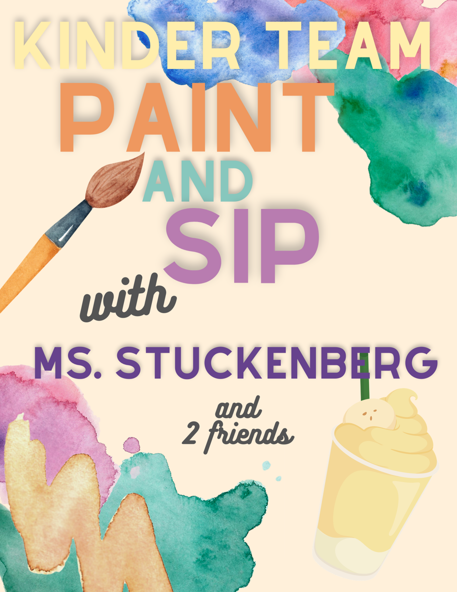 Paint and Sip! You and 2 friends are invited to sip on fruit smoothies and paint with the Kindergarten Team; Mrs. Hardy, Mrs. Little and Mrs. Stuckenberg! Friday, April 24 @ 2:15p-3:15p in Mrs. Hardy's room.