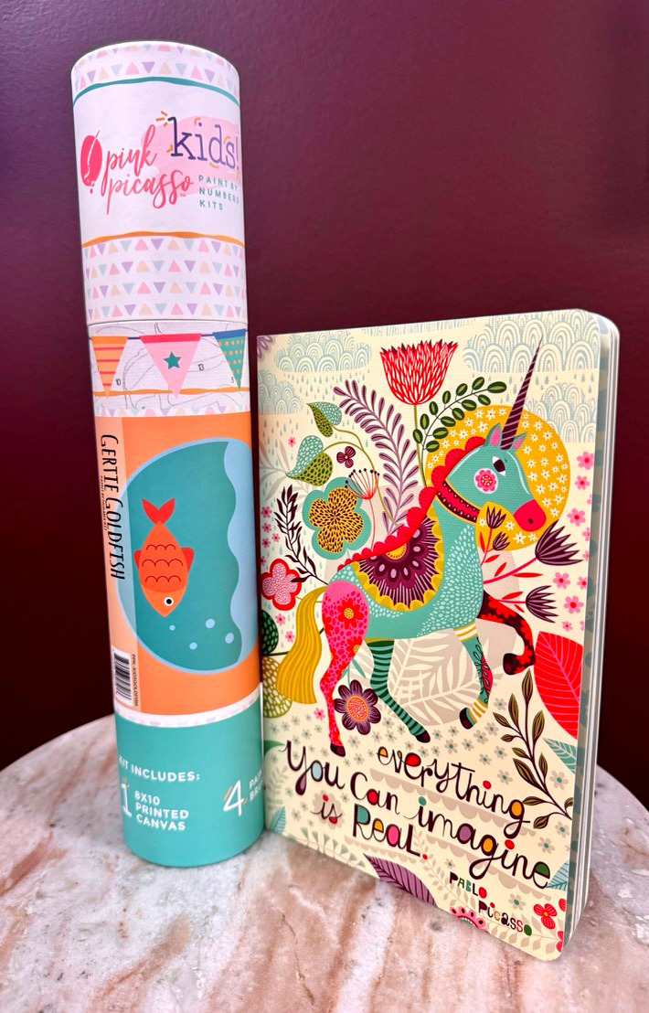 Introducing the Paint by Number Kit featuring the delightful "Gertie Goldfish" design! This creative set includes an 8x10 printed canvas that makes it easy for artists of all levels to bring this golden goldfish to life. Perfect for relaxing and unwinding, this kit comes complete with a "unicorn" journal.