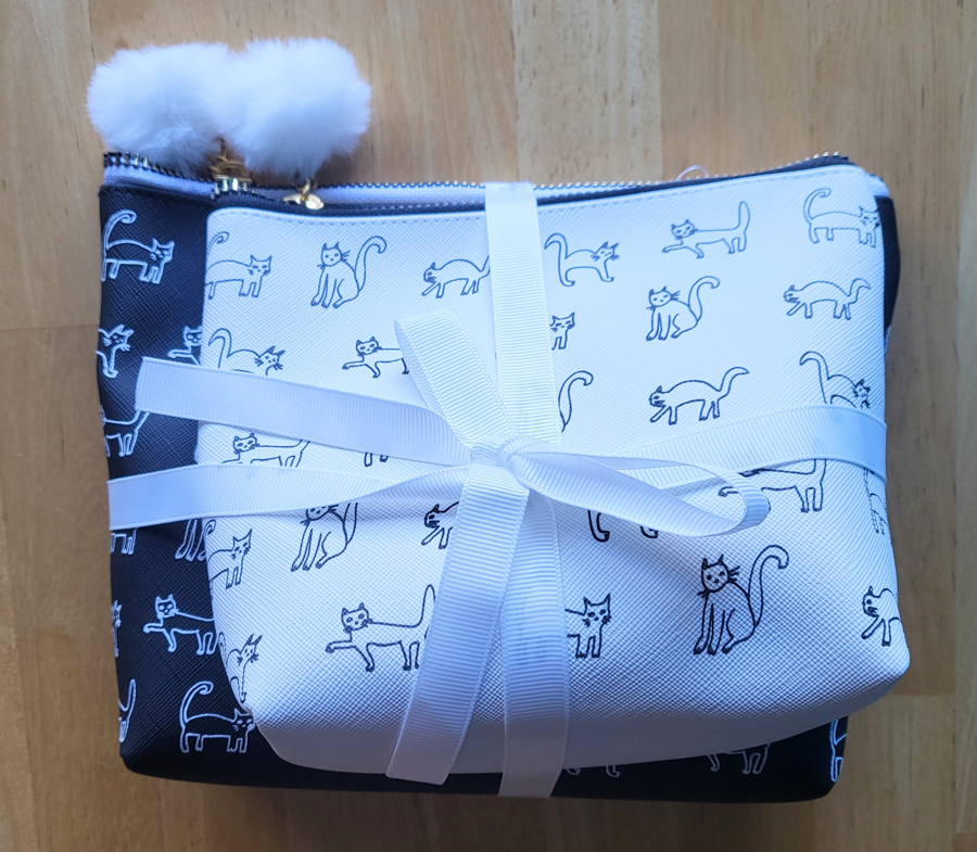 Pair of Cat Themed Cosmetic Bags - Black/ Ivory