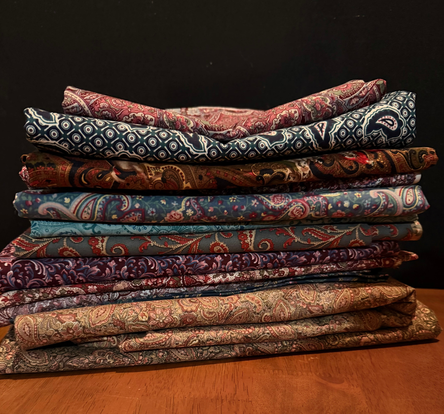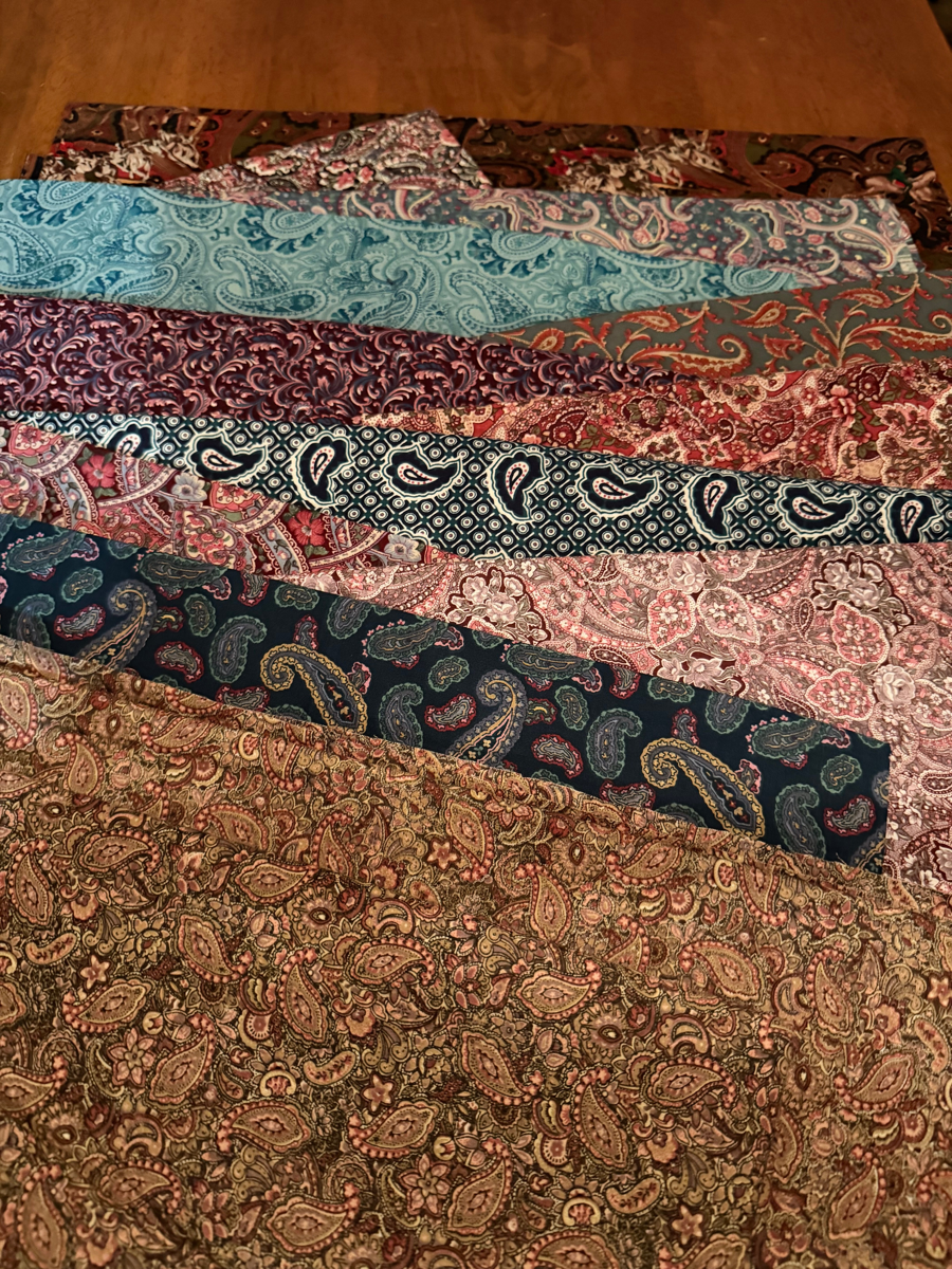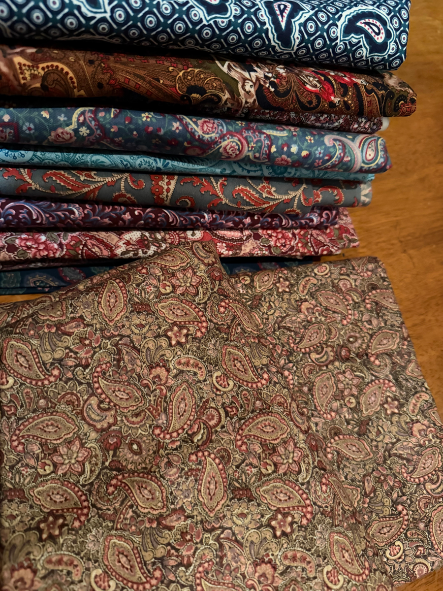 Paisley 2 (12 different fabrics including a 9, 6 and 3 yard piece) Multiple pieces of fabric. No guarantees for sizes (all sizes are estimates)