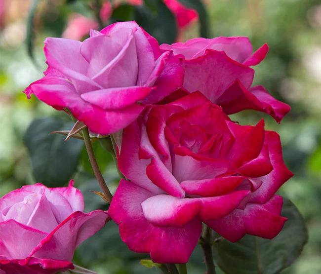 Hybrid Tea Paradise™ is a classic Hybrid Tea rose that lives up to its name with large, luminous blooms and an enchanting fragrance. Its high-centered flowers, 5–6 inches across with 30+ petals, open in a silvery lavender hue edged in magenta-pink—a color that deepens in cool weather and softens to blush tones as temperatures rise. This striking contrast creates a truly captivating display in the garden. Introduced in 1978 by Jackson & Perkins and bred by Herbert Swim & Jack Christensen, Paradise™ is a continual bloomer with dark green foliage and an upright, vigorous habit. Its lightly fruity, traditional rose fragrance adds to its appeal, making it a favorite for cutting gardens, exhibition, and elegant floral arrangements. Easy to grow and disease resistant, Paradise™ thrives in full sun and well-drained soil, rewarding gardeners with season-long beauty and timeless charm.