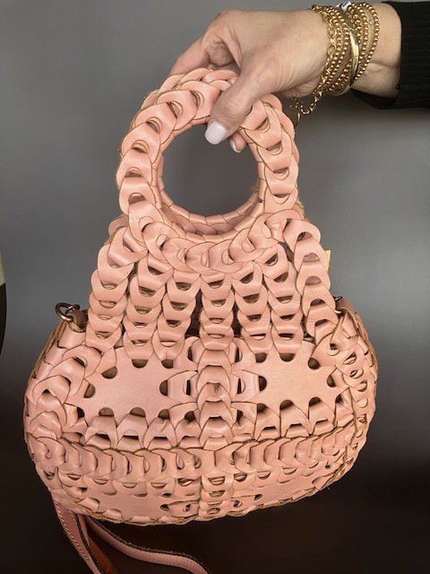 Patricia Nash Ticci Woven Leather Crossbody Bag - New With Tags and Dust Bag. Meet the gorgeous little sister of the Pisticci, one of the most recognizable bags from Patricia Nash. Crafted in luxurious leather, each link is attached by hand. Inspired by the popular leather chain-link bags of the 1970s, it can be carried as a clutch, by the handles, or with the adjustable/detachable strap.
