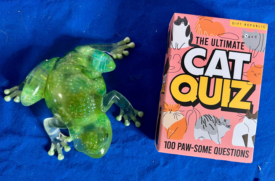 Whether you’re relaxing with a word search, testing your feline knowledge, or sipping from your cat mug, this basket is all about comfort and cat-loving joy. The included small resin frog adds a quirky little touch of personality to the mix!
