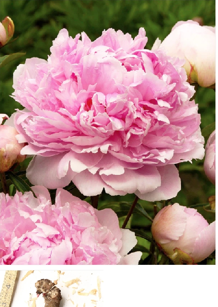 A standout hybrid, with fully double flowers of rich, deep pink color! Extremely fragrant, too. Plants grow to about 2-1/2 feet tall with a dense covering of thick, glossy foliage. The ideal border plant, but wherever you plant them, plan on permanence. Once established peonies grow for many years. We ship 2 to 3-eye divisions that will establish themselves quickly in your garden.