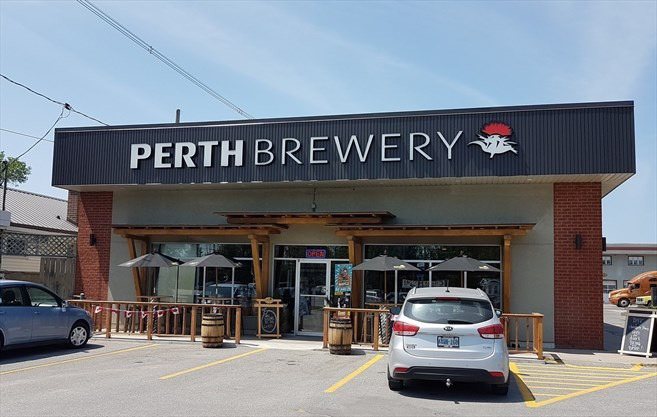 Perth Brewery merchandise including a 6-pack sampler of beers, two Perth Brewery glasses, a beer cozy, Perth Brewery branded: baseball cap, burlap gift bag, "BON FIRE" fridge magnet, and "Last Duel" button. Perth Brewery is a family run craft brewery. With our cant miss location on hwy 7 in Perth, Ontario, we welcome you to stop in and tour our bright and inviting brewery, experience our tasting bar and visit our retail beer store. Our team is passionate about bringing a rich brewing tradition back to Perth and crafting beer that the community can be proud to call their own. Stop by, see the fun and exciting things happening, taste and take away some great beer!