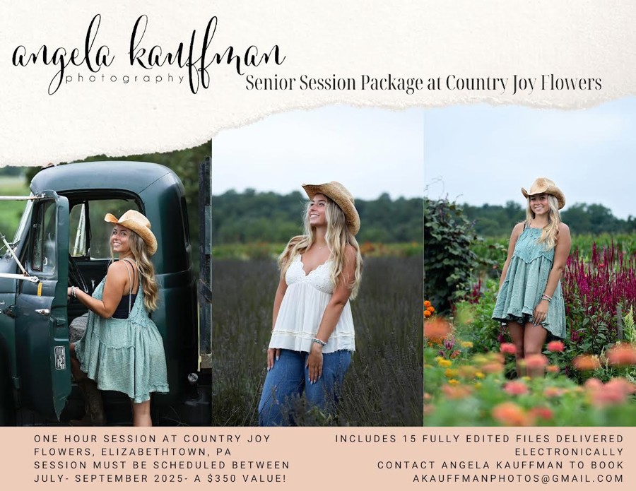 One hour session at Country Joy Flowers in Elizabethtown Includes 15 fully edited files delivered electronically Session must be scheduled between August 2026 - September 2026 **Contact Angela no later than APRIL 30, 2026** Donated by: Angela Kauffman Photography