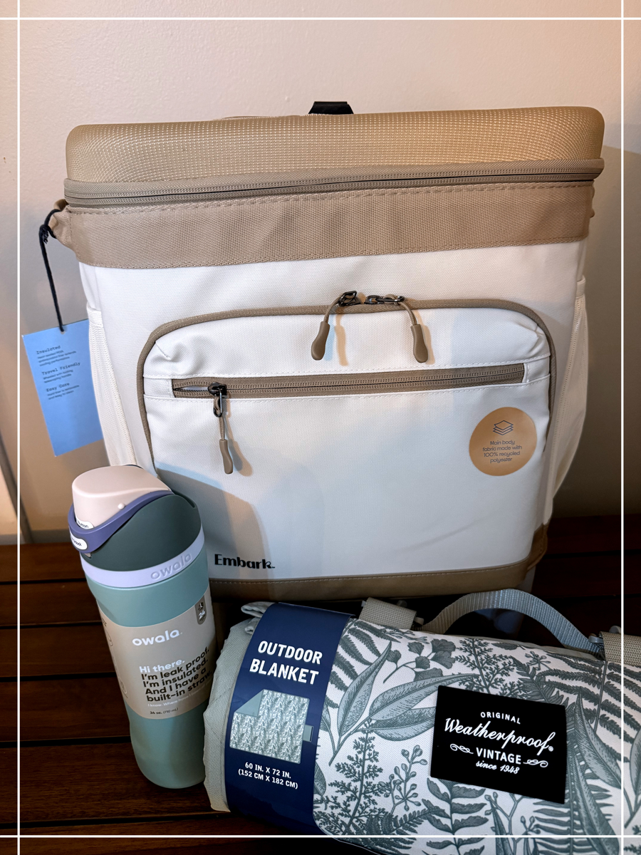 Get ready for effortless outdoor fun with this all-in-one picnic package, perfect for sunny days, beach trips, or park adventures! This bundle includes a stylish weatherproof picnic blanket in beautiful botanical green hues, a family fun catch game, a convenient 26-quart rolling cooler, and a durable 24 oz Owala water bottle. This picnic package has everything you need to make lasting memories outdoors. Just add sunshine!