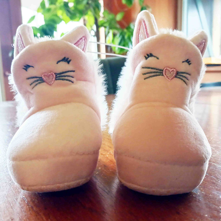 Adorable pink kitty slippers for that special one-year-old learning to walk!