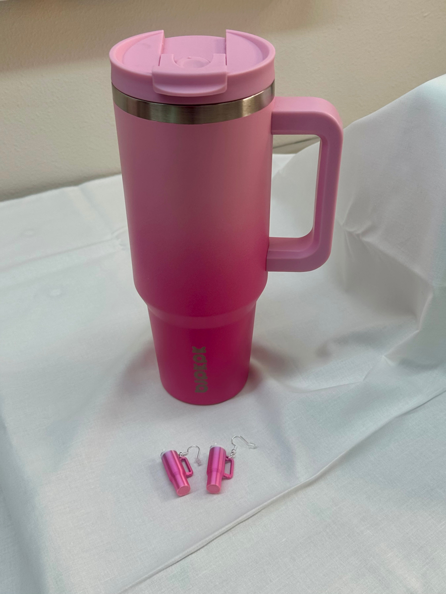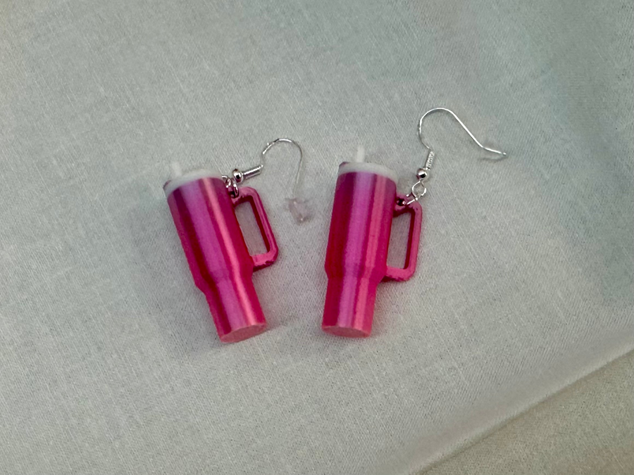 Pink Tumbler + Matching 3D-Printed Earrings Set!