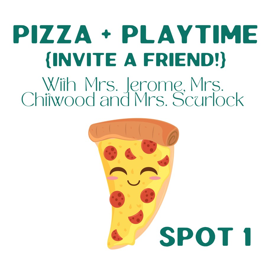 The winning bidder will join Mrs. Jerome, Mrs. Chitwood and Mrs. Scurlock for some yummy pizza and then playtime. The winning child may also invite a friend! There are four (4) available spots for this activity, you are bidding on one of them. This activity will take place on May 19, 2025 in the library from 1:00-2:00 (tentatively, final time may change).