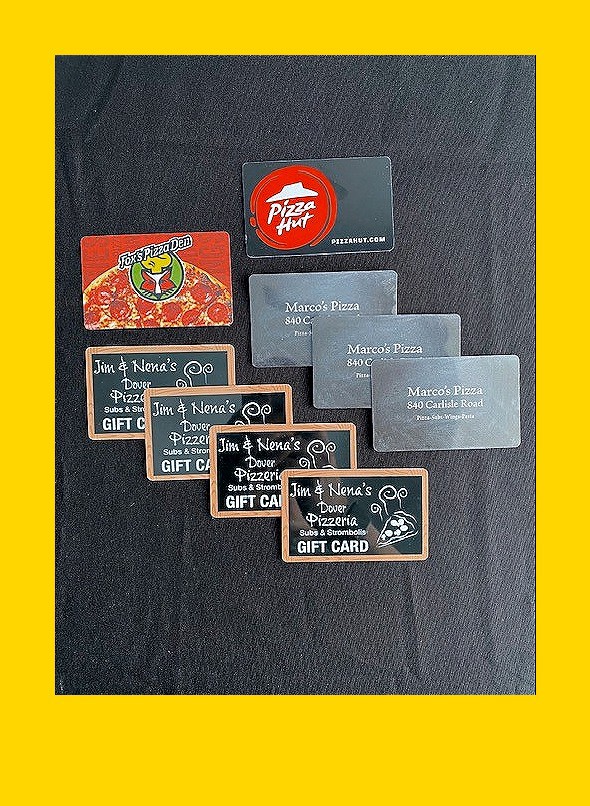 A Pizza Lover's Dream! You'll be able to treat the whole family—again and again!—with this lot of gift cards to 4 favorite local pizza parlors