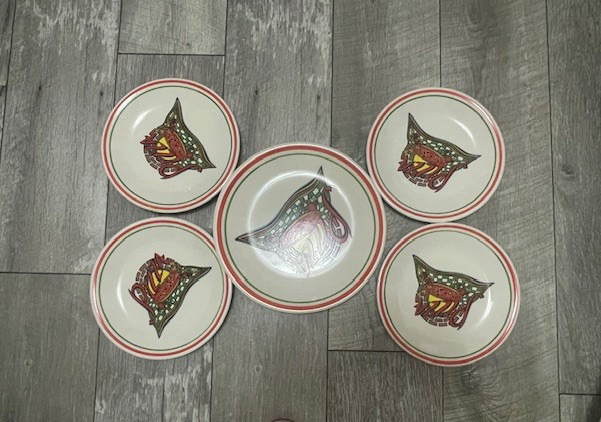 PIZZA PARTY CEREMIC SET - One 12 inch Platter and four 9.3 in plates.