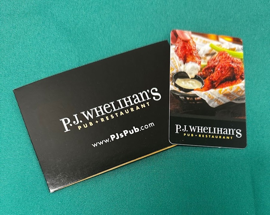 PJ Whelihan's Gift Card ($50) Donated by: PJW Restaurant Group PJ Whelihans 3882 Union Deposit Rd, Unit 33 Harrisburg, PA 17109