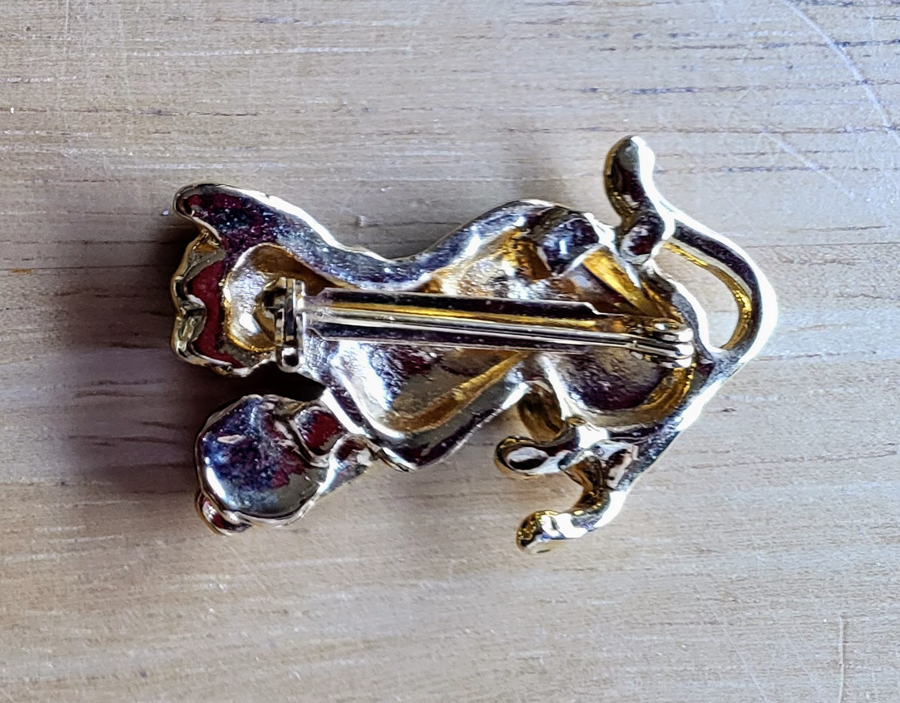 Playful black and goldtone cat pin