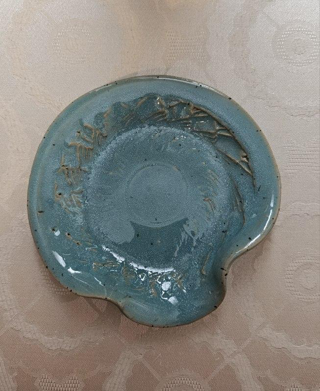 Blue/Green Pottery Spoon Rest. Can use and also beautiful to display.