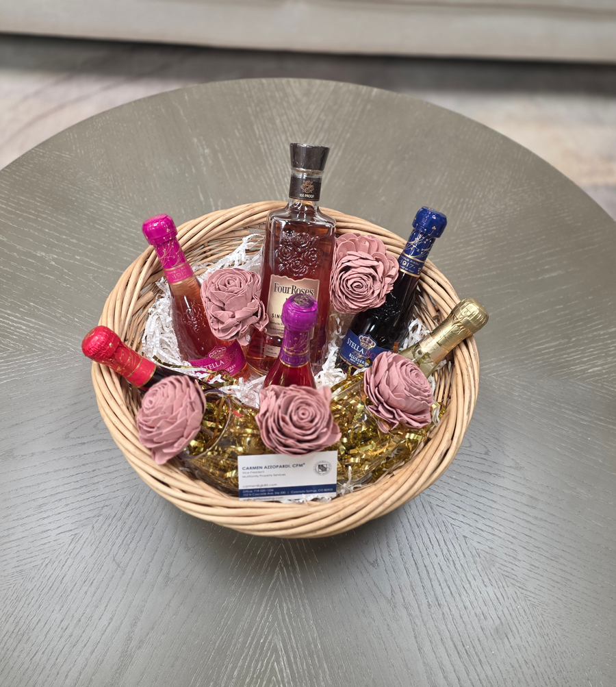 Can’t choose between wine or whiskey? Why not both! This basket brings the best of both worlds — a smooth bottle of Four Roses Bourbon Whiskey, an assortment of Stella Wines, and two elegant wine glasses to sip in style. Perfect for the indecisive drinker or the ultimate host — because every night deserves a cheers!