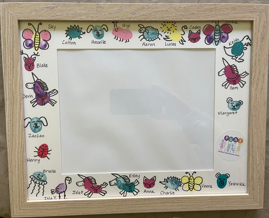 A one-of-a-kind keepsake featuring each child’s fingerprint turned into a tiny animal, surrounding a class composite photo in the center. This playful and heartfelt piece captures both their individuality and their special bond as a class—creating a memory to treasure for years to come.
