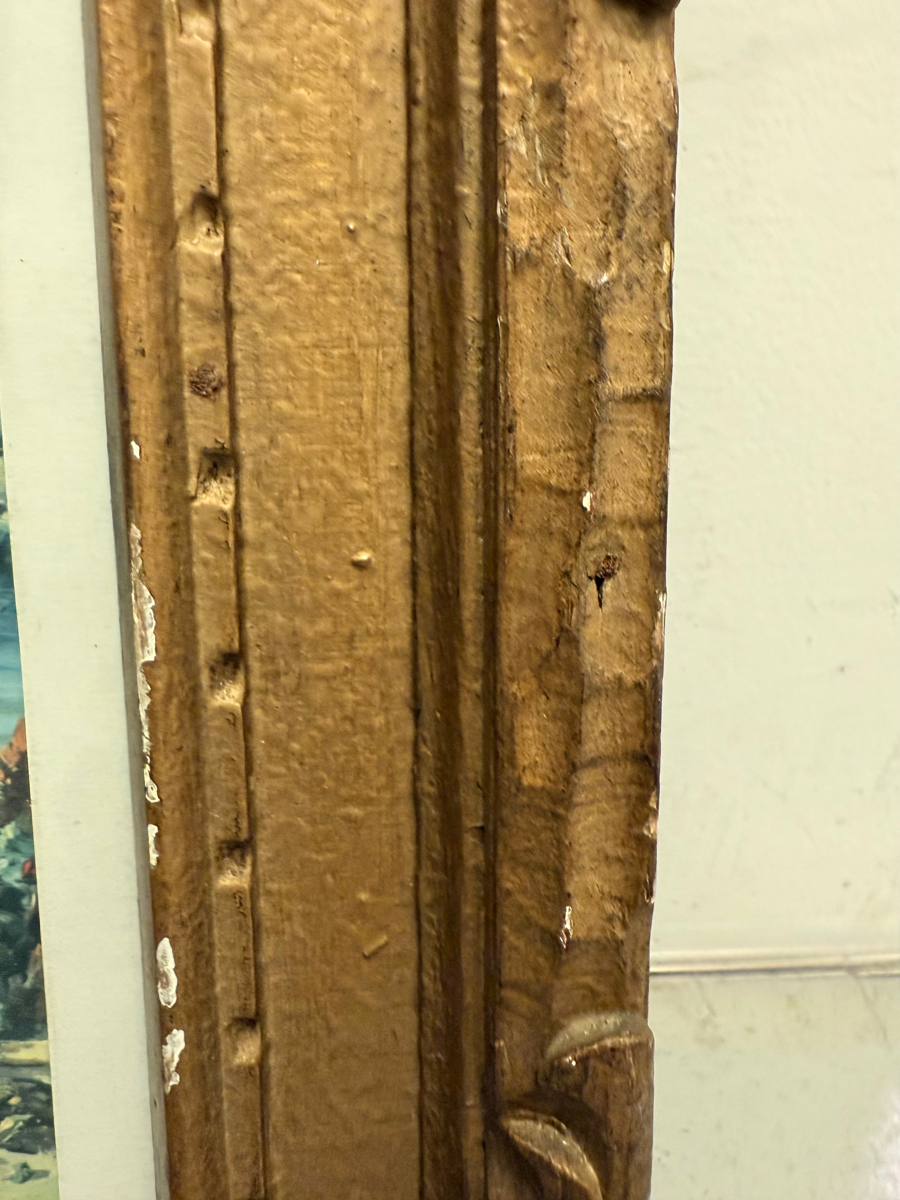 This framed art print is titled "Preparing to Sail", an artwork by the British painter Donald Greig (1916–2009). The painting depicts a bright, coastal harbour scene, likely in the West Country of England, a region Greig often painted. Two figures are shown tending to small boats near the shore, with several other sailboats and a town visible in the background across the blue water. The piece is housed in a distinct, ornate, antique-style gold frame with carved relief details. Note: the frame does have some inperfections which can add to the character of the piece. Photos do not give this piece justice it deserves. Come visit the store and view in person during the auction period.