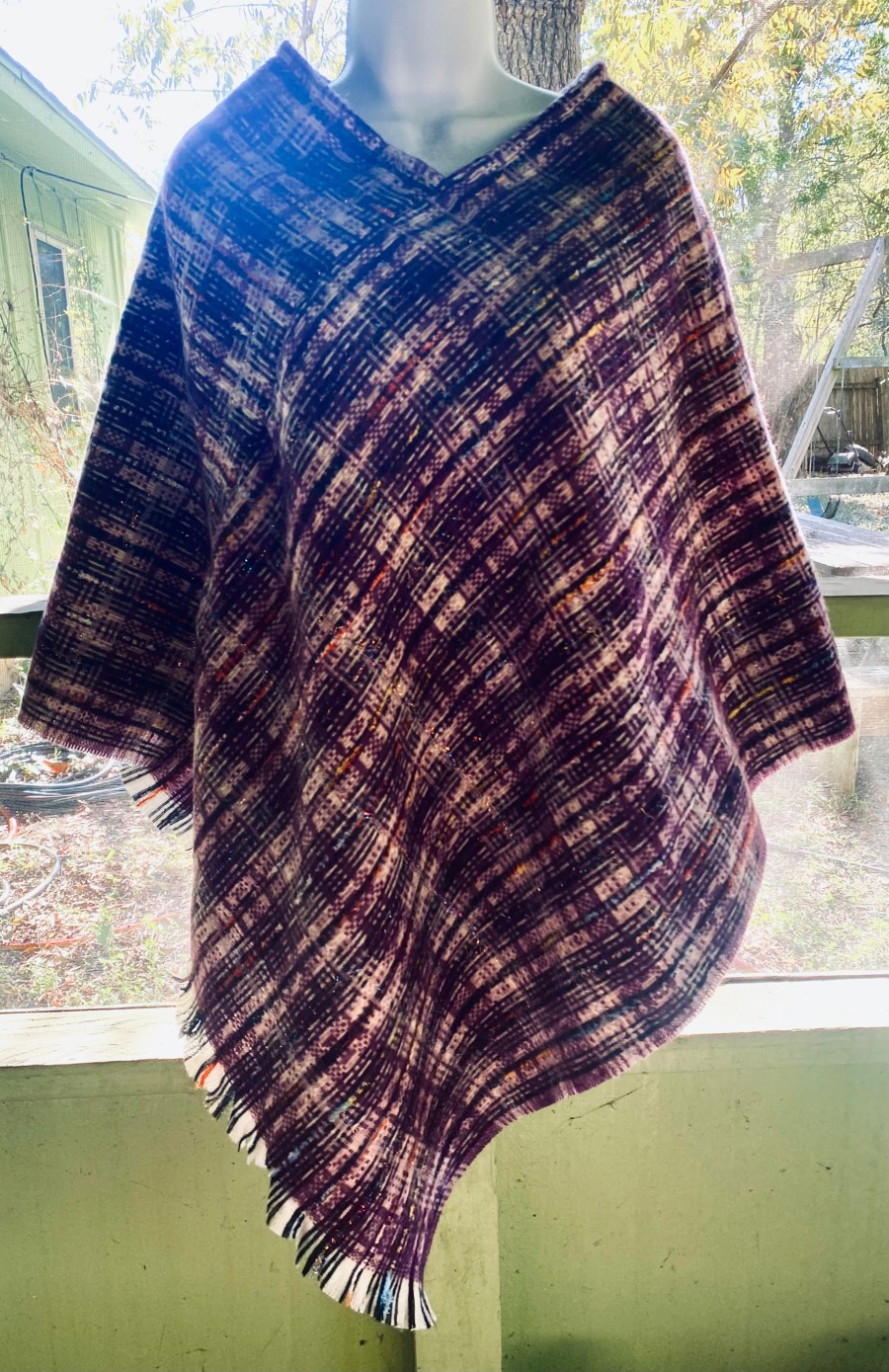 This pretty poncho has small glittering thread running though