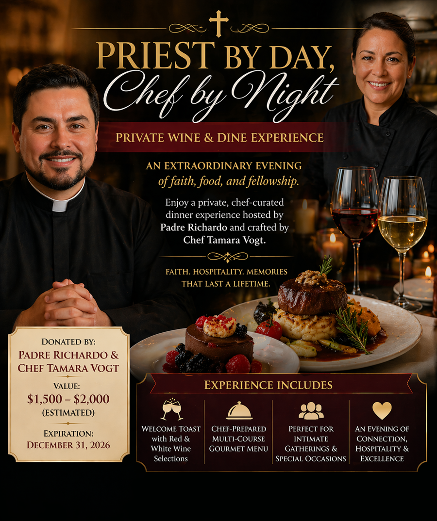 Enjoy an unforgettable private tasting dinner experience hosted by Padre Richardo and expertly crafted by renowned chef Tamara Vogt, whose 35+ years in the hospitality industry have made her a beloved name in the community.