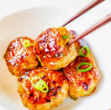 * Chicken Tofu meatballs wth teriyaki shiitake-mushroom sauce