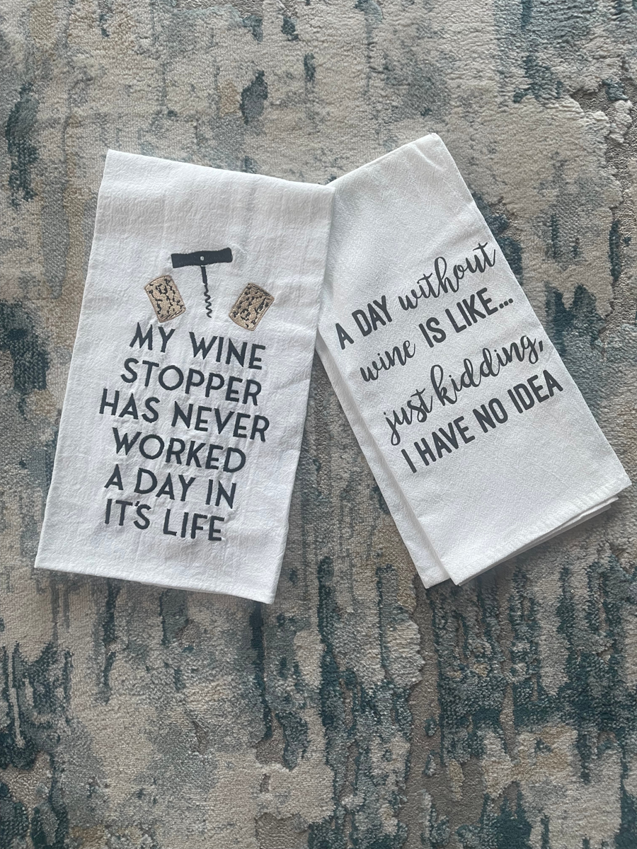 Included is a stunning 9 bottle wine rack, 4 wine glasses and wine themed tea towels.