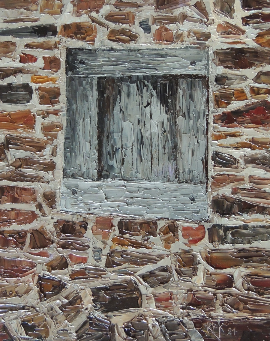 Montgomery County, PA. 10x8". A rare example of a window frame from the Heckler barn that is fastened with wooden pegs instead of nails, which were expensive in the 1800s and earlier. This painting can be seen at the Oregon-Jerusalem Historical Society, located near Toledo, Oh. Call with questions 419 902-5149