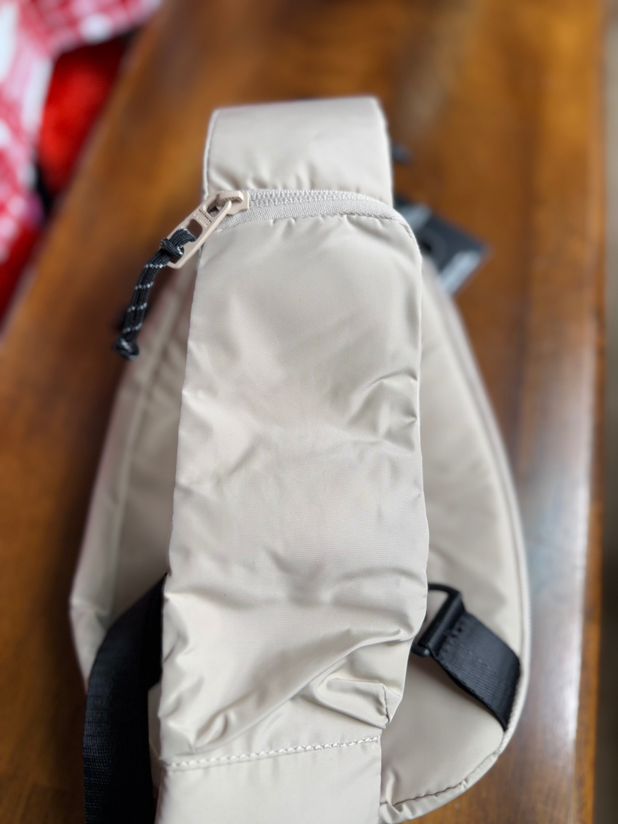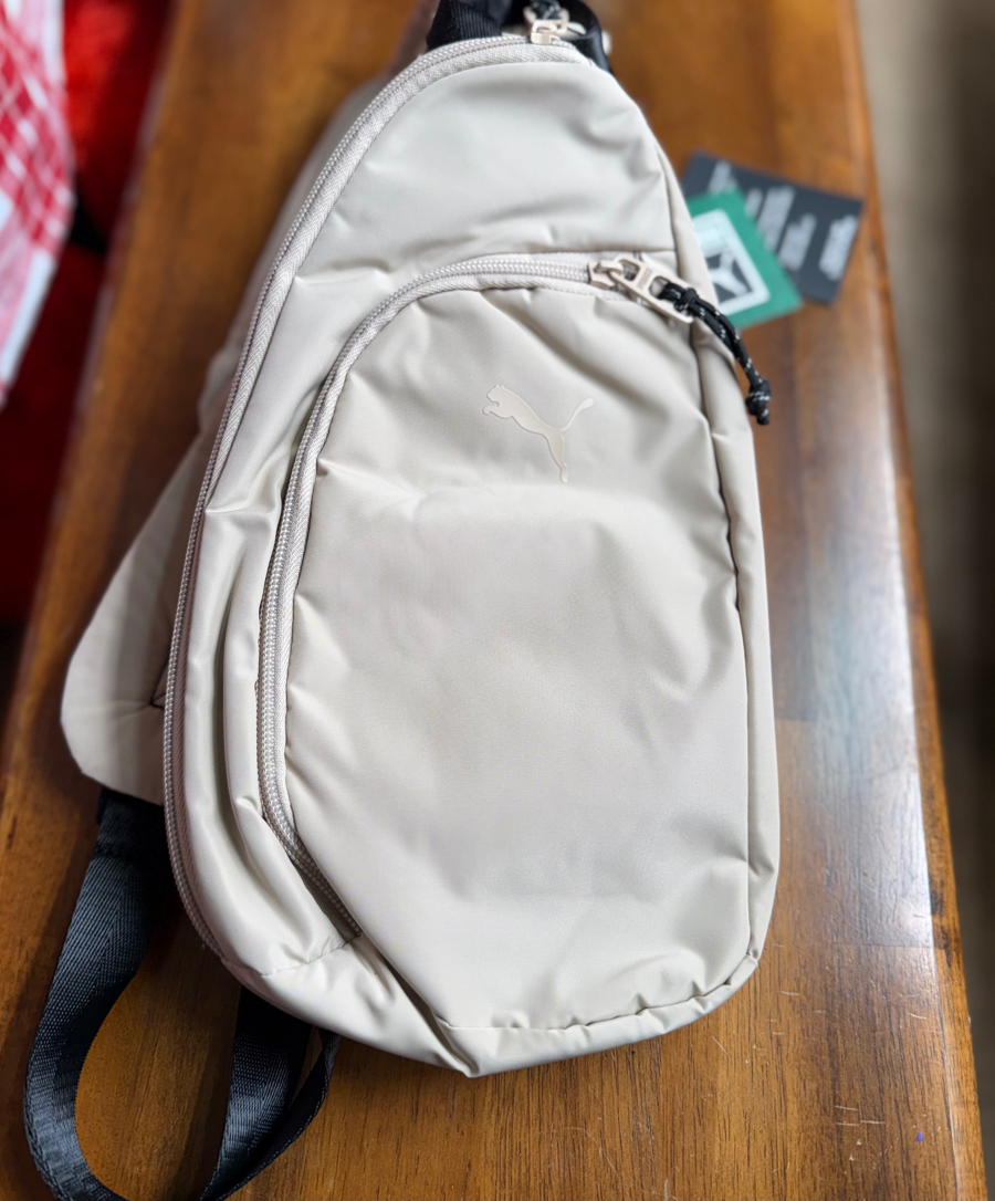 COMPACT & SPORTY: Lightweight 12” x 7.5” x 3” sling bag made for hands-free convenience.