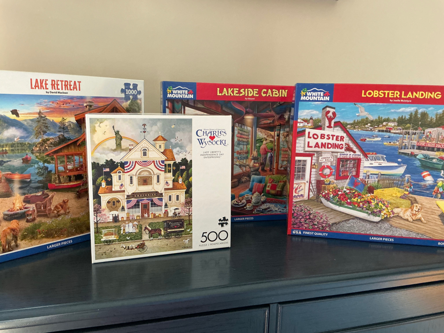 Great for the avid puzzler! 12 gently used puzzles. Enough to keep you busy for the entire winter!