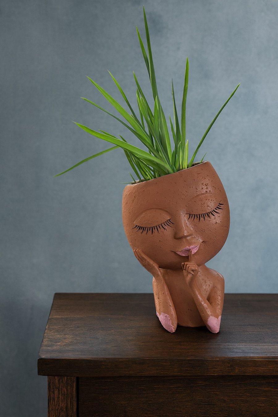 "Quiet Please" Face Planter with Live Plant - Home Decor