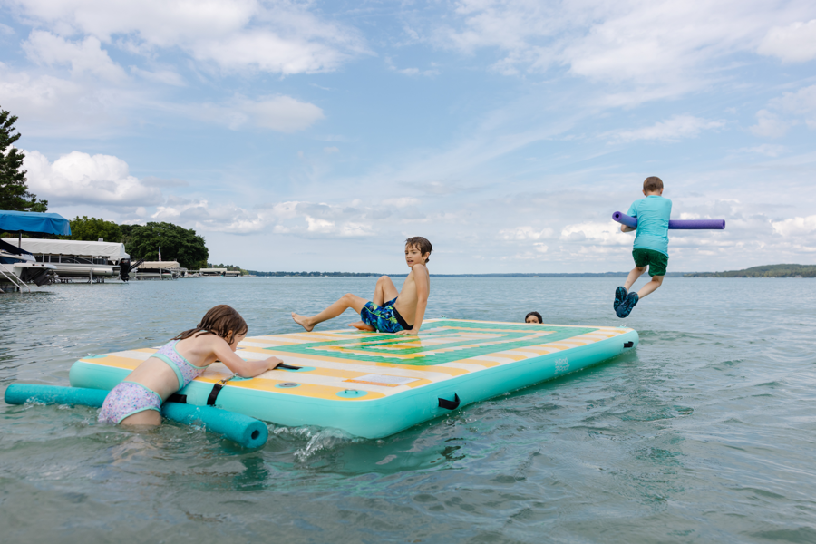 Take your lake days to the next level with the Cannonballer Inflatable Dock by Radz Padz—a premium, high-performance float built for serious fun on the water. Engineered with durable drop-stitch technology and a high-pressure core, this massive 6' x 12' inflatable dock is designed for stability, strength, and nonstop action. Included Accessories: Manual air pump, repair kit, 4 step rope ladder, and a storage bag with shoulder strap for easy transport.