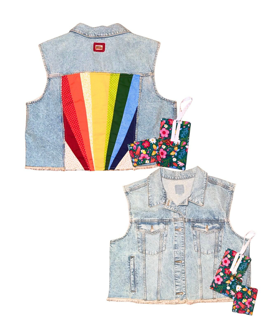 Mended Vintage: XL Denim Rainbow Vest and Wristlet