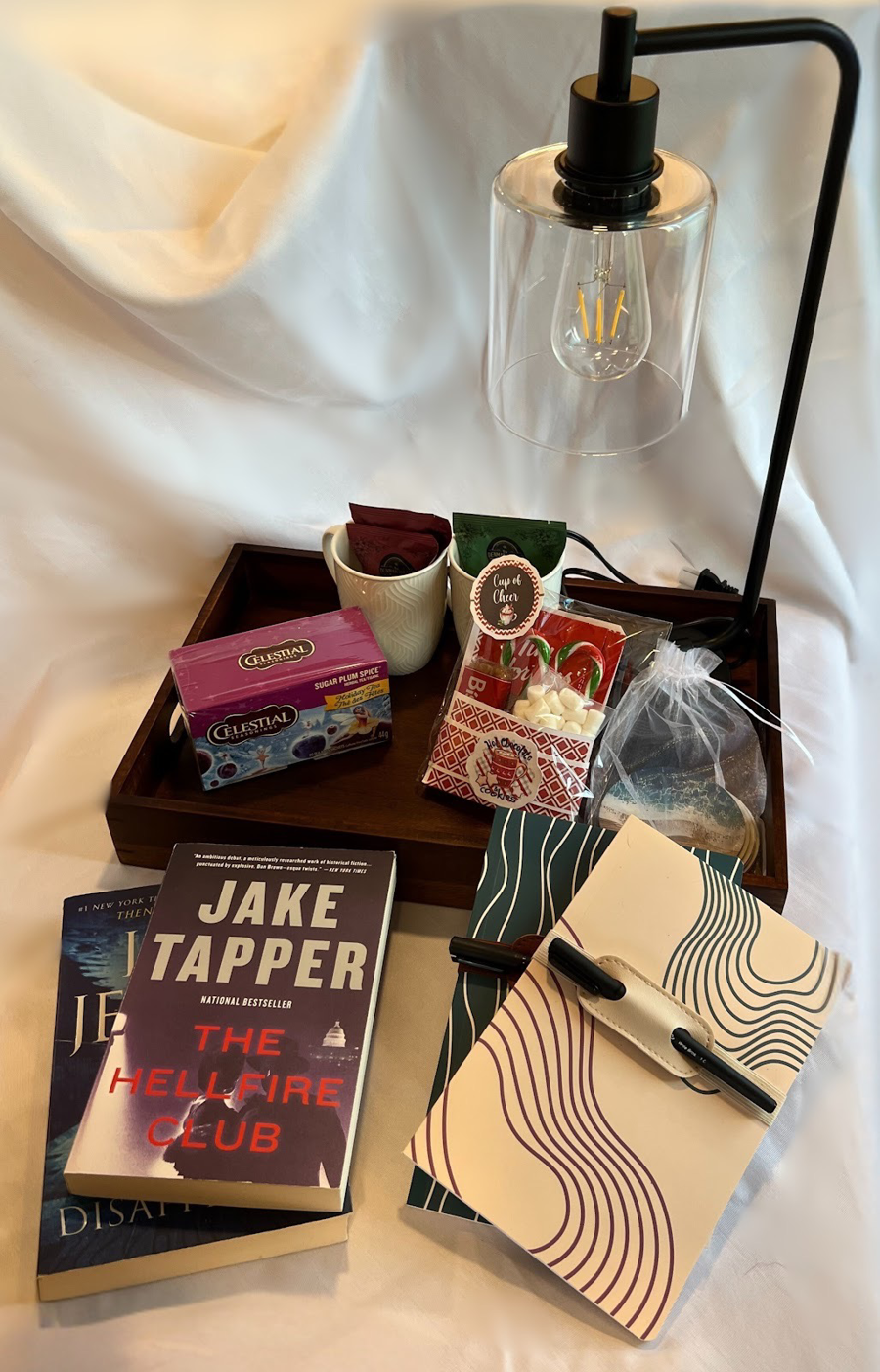 Everything you see in the picture! Just about everything you need for a cosy reading nook. Add a chair and some fuzzy slippers and you are ready for a trip to Litland!