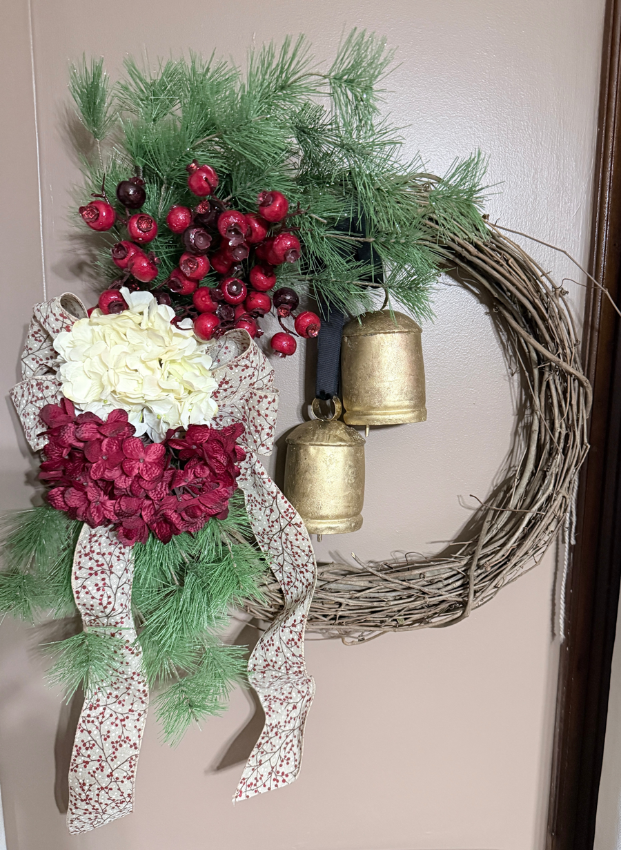 This stunning grapevine wreath is the perfect addition to your home decor, featuring a beautiful arrangement of artificial greens that complement the vibrant red berries. The wreath is adorned with charming red and cream flowers, adding a touch of elegance and warmth to any space. To enhance its festive appeal, gold bells are thoughtfully incorporated into the design, creating a delightful sound and visual interest. Don’t miss the chance to bring this unique and eye-catching piece into your home this season! The Ink Factory is proud to have been in business for 17 years, supporting local charities and events throughout that time. Come see us for all your business and event apparel!