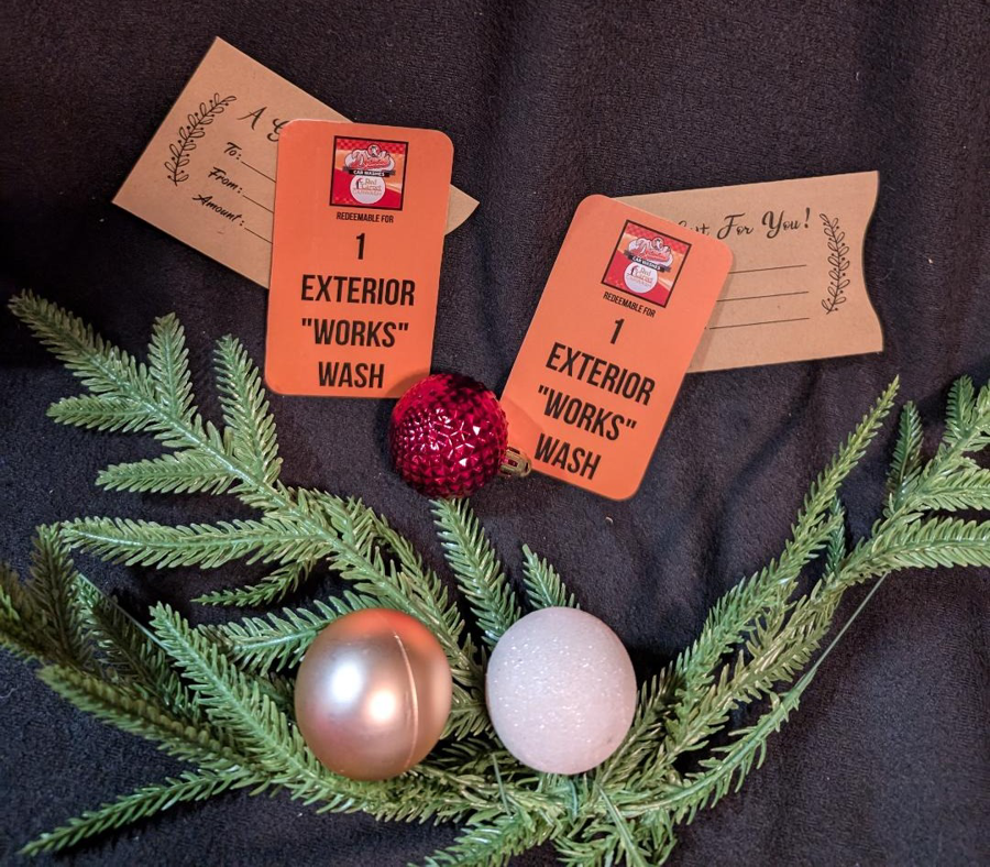 Includes 2 "The Works" Outside deluxe washes. A great way to get rid of the winter road salt and dirt and make your car look great! THE WORKS: Single Wash Wash Includes Underbody Wash Sealer Wax Wheel Brightener AquaGuard Foaming Wax Rust Inhibitor Wall of Foam Ceramic Wax Tire Shine Towel Dry