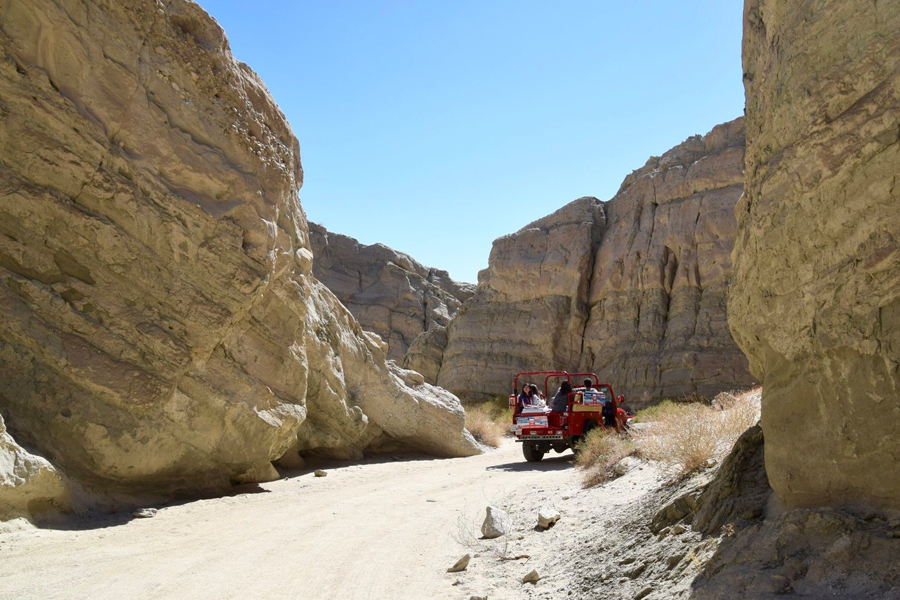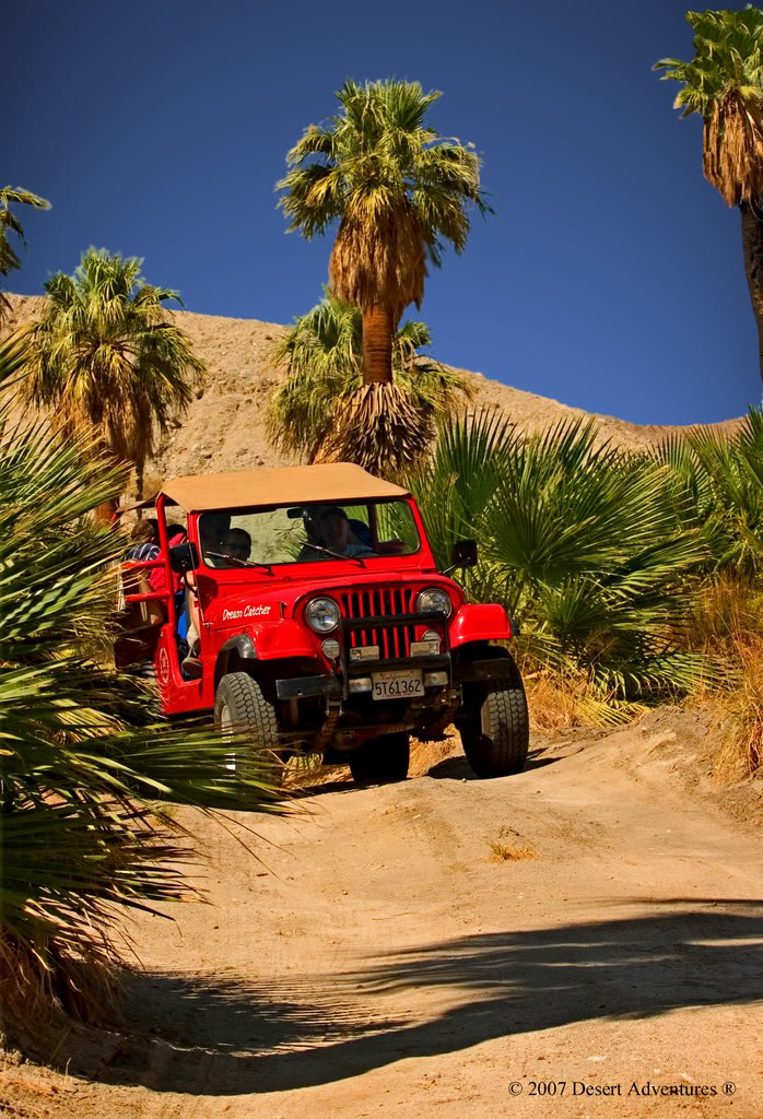 A certificate for $100.00 off of an eco-tour from Red Jeep Tours. Certificate is valid for the San Andreas Fault Jeep or Hiking Tour, which is in the greater Palm Springs area and generally costs approximately $125.00 per person.